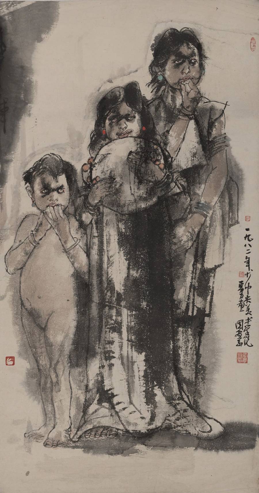 三姐妹 100X58cm 1982年 纸本水墨