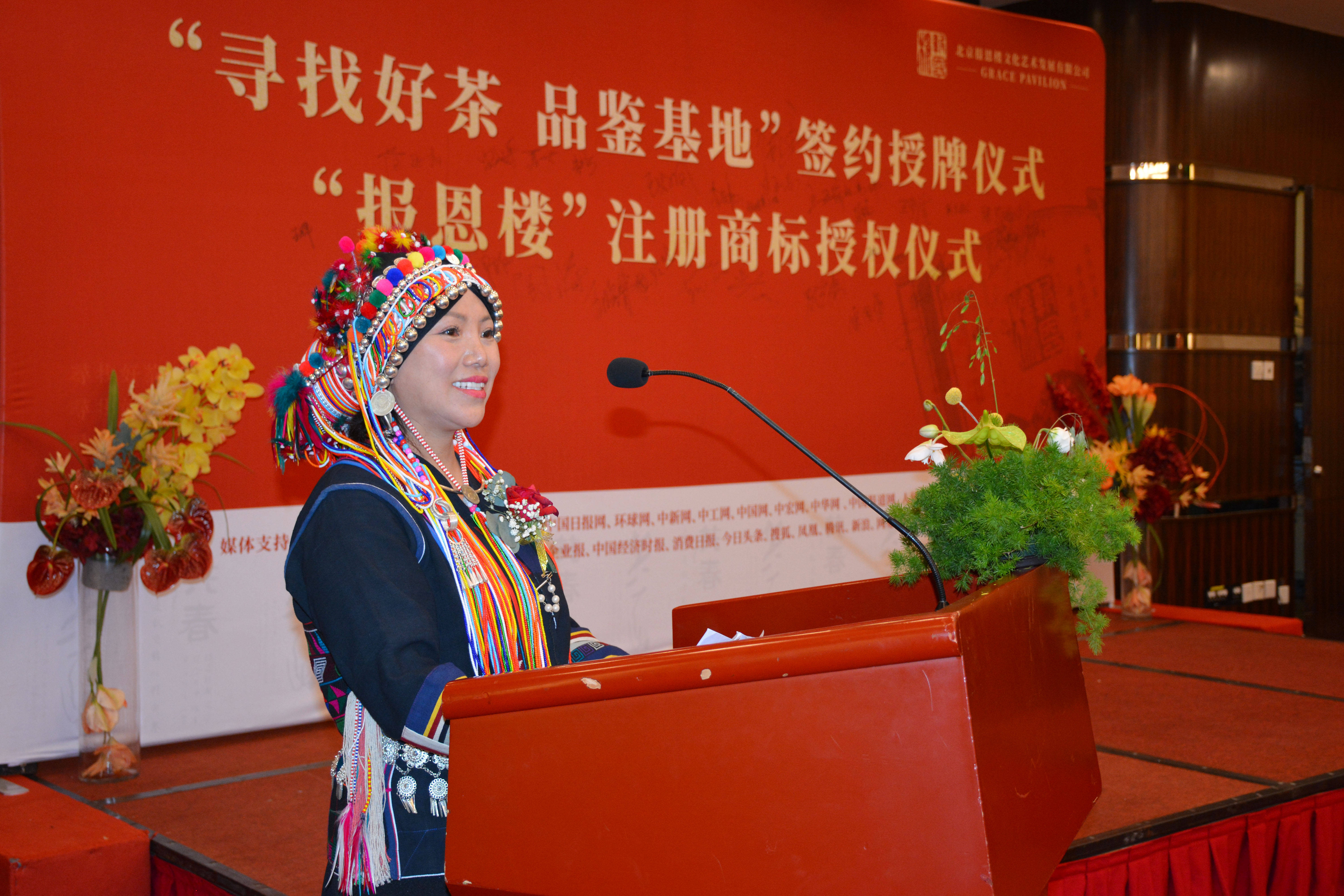 不止伍号基地茶园,杨妹英继承了家族的老班章茶园300多亩,其中包含大树、古树有1万多棵。哈尼族是一个能歌善舞的民族,杨妹英在北京的活动现场以一首民族歌谣让人们感受到了她的热情和淳朴,她真诚地表示,“我从小对种茶、制茶耳濡目染,发现茶文化的博大精深,在这样的环境影响下深深爱上了普洱茶,也想让更多人知道普洱茶,品尝普洱茶。”