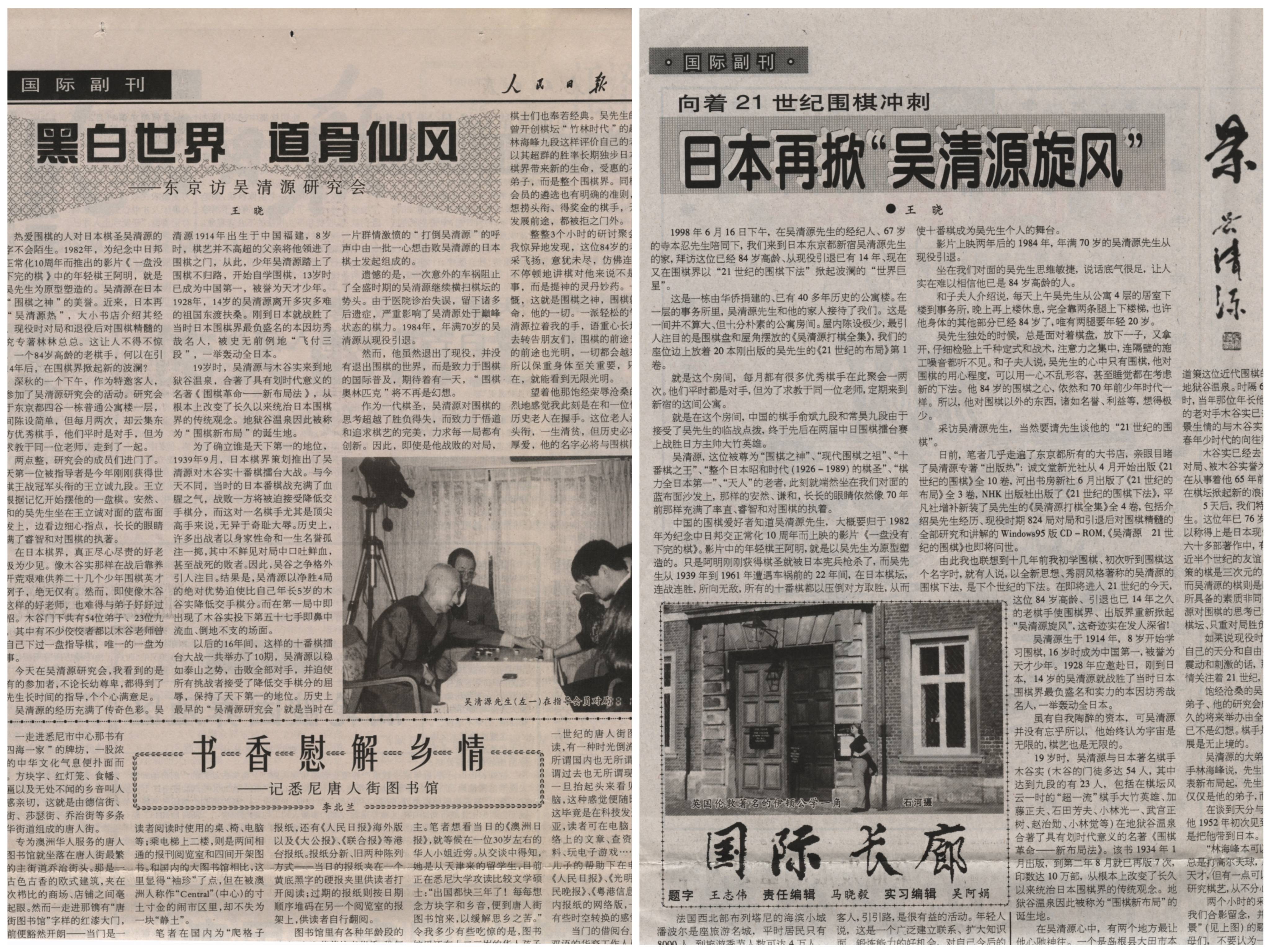 1998年在日本期间,李让写出了万余字长篇报道《日本东京专访棋圣吴清源》,被《光明日报》《环球》等国内九家权威报刊采用,《人民日报》将其作为重头文章——《黑白世界 道骨仙风——东京访吴清源研究会》——安排在中国国家主席访日前夕在《国际版》头条刊发。